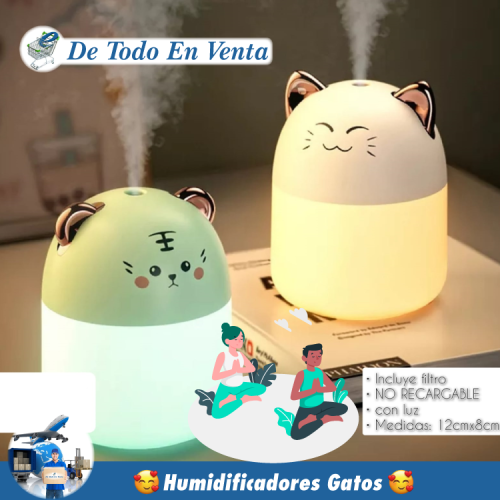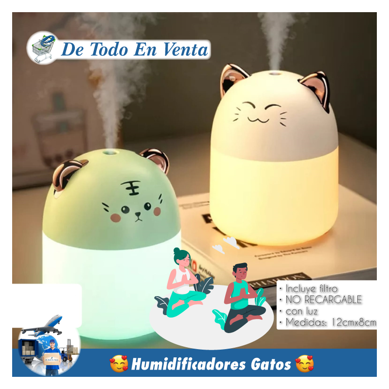 Nuestro humidificador gato es la combinación perfecta de funcionalidad, estilo y diversión. Asegúrate de crear un ambiente saludable y encantador en tu hogar con este adorable humidificador. No solo disfrutarás de un aire fresco y bien humidificado, sino que también agregarás un toque de dulzura a tu espacio. ¡Haz de tu hogar un lugar más cómodo y acogedor con nuestro humidificador gato!